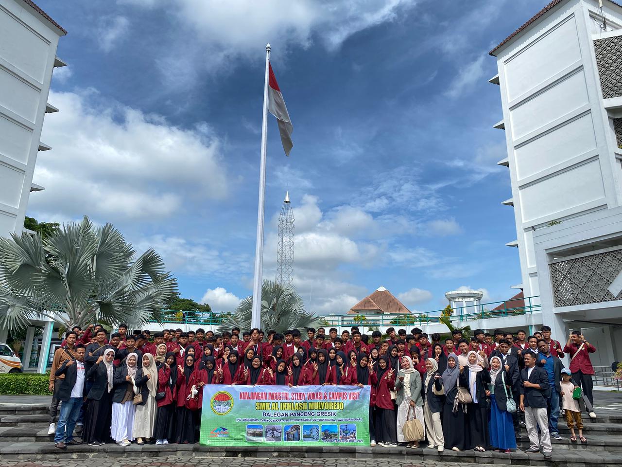 Siswa dan Guru saat berada di kampus Universitas Muhammadiyah Yogyakarta (humas) YPP Al Ikhlash – SMK Al Ikhlash melaksanakan kegiatan Kunjungan Industri, Study Vokasi, dan Campus Visit pada Selasa–Kamis, 18–20 November 2025 di wilayah Yogyakarta. Kegiatan ini diikuti oleh 67 siswa dari empat program keahlian, yaitu Teknik dan Bisnis Sepeda Motor (TSM), Teknik Komputer dan Jaringan (TKJ), Desain Komunikasi Visual (DKV), dan Akuntansi (AKT). Para siswa didampingi oleh 24 guru pendamping. Keberangkatan dan Transit Rombongan berangkat pada Selasa malam dari halaman SMK Al Ikhlash dalam kondisi hujan. Meskipun demikian, seluruh peserta tetap bersemangat memasuki bus dan memulai perjalanan. Setibanya di Yogyakarta pada dini hari, rombongan transit di Garden Resto untuk melaksanakan salat subuh berjamaah, bersih diri, serta menikmati sarapan sebelum memulai rangkaian kegiatan. Kunjungan Industri: PG Madukismo dan TVRI Yogyakarta Peserta dibagi menjadi dua rombongan sesuai program keahlian. Kunjungan pada dua institusi ini memberikan wawasan nyata mengenai dunia industri, teknologi, media, serta proses kerja profesional yang selama ini dipelajari di sekolah. Study Vokasi di BLPT DIY Seluruh rombongan kemudian melanjutkan kegiatan ke Balai Latihan Pendidikan Teknik (BLPT) DIY untuk melaksanakan study vokasi. Siswa diarahkan ke ruang praktik berdasarkan kompetensi keahlian masing-masing: Kegiatan di BLPT DIY memberikan pengalaman praktik langsung yang relevan dengan kebutuhan kompetensi masing-masing jurusan. Siswa dan guru saat berada di Balai Latihan dan Pendidikan Teknik Yogyakarta (Humas) Kunjungan ke Omah Oblong dan Kegiatan Malam Setelah kegiatan vokasi selesai, rombongan melanjutkan perjalanan ke Omah Oblong untuk menyaksikan proses pembuatan kaos dan sablon. Siswa melihat secara langsung tahapan produksi industri kreatif berbasis sandang. Rombongan kemudian menuju hotel untuk beristirahat, dan pada malam harinya siswa diberi kesempatan menikmati suasana kawasan Malioboro dan lingkungan Keraton Yogyakarta. Campus Visit Universitas Muhammadiyah Yogyakarta Pada hari berikutnya, kegiatan diteruskan dengan Campus Visit ke Universitas Muhammadiyah Yogyakarta (UMY). Para peserta diterima oleh bagian Sub Admisi dan diarahkan ke ruang pertemuan utama. Dalam sesi ini, pihak UMY menyampaikan profil kampus, program studi, fasilitas pendidikan, serta gambaran kultur akademik di lingkungan universitas. Kegiatan ini bertujuan menambah wawasan peserta mengenai pilihan melanjutkan pendidikan ke jenjang perguruan tinggi. Wisata Edukasi Lava Tour Merapi Usai kunjungan ke UMY, peserta mengikuti kegiatan Lava Tour Merapi dengan menggunakan jeep khusus. Rombongan mengunjungi Museum Mini Sisa Hartaku dan Batu Alien, serta menyusuri jalur wisata edukasi di lereng Merapi untuk mempelajari sejarah erupsi dan dampaknya. Penutup dan Kepulangan Sebelum kembali ke Gresik, rombongan menyempatkan diri singgah di pusat oleh-oleh khas Yogyakarta. Seluruh rangkaian kegiatan berjalan lancar, aman, dan sesuai perencanaan. Kepala SMK Al Ikhlash, Mochamad Eka Akbar, S.Pd.I., S.Kom., menyampaikan bahwa kegiatan tahunan ini bertujuan memberikan pengalaman langsung di dunia industri, vokasi, dan perguruan tinggi sehingga siswa memiliki gambaran lebih luas terkait masa depan karier dan pendidikan mereka. Salah satu peserta, Heru (TSM), mengungkapkan kesan positifnya: “Kegiatan ini sangat bermanfaat sekaligus menyenangkan. Selain menambah wawasan, suasananya juga menghilangkan kepenatan dari rutinitas sekolah.” Dengan terlaksananya kegiatan ini, diharapkan siswa SMK Al Ikhlash semakin termotivasi untuk meningkatkan kompetensi, memperluas wawasan, serta menyiapkan diri menghadapi dunia kerja maupun pendidikan lanjutan. (Alam)