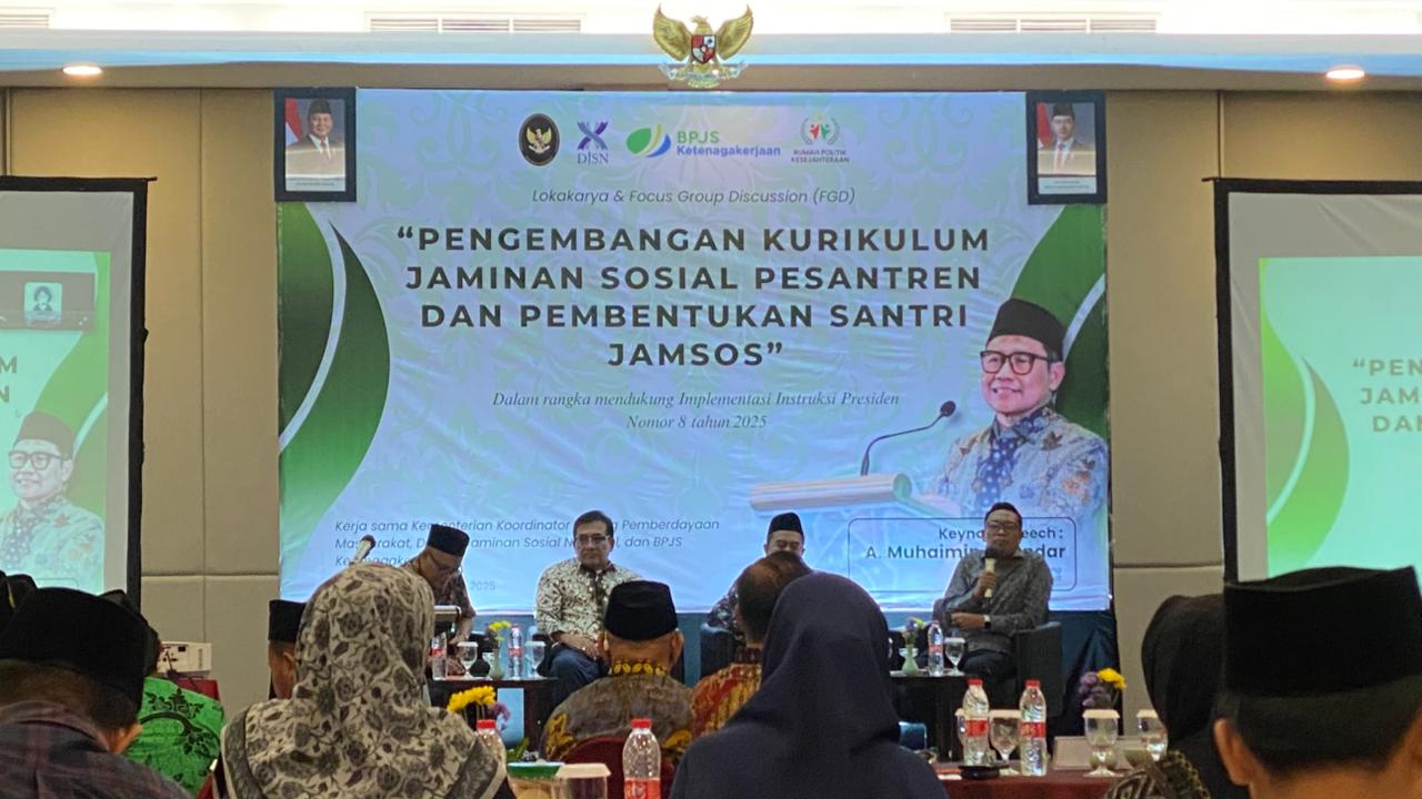 Beberapa narasumber saat memberikan paparan materi dalam lokakarya. (humas) YPP Al Iklash— Pesantren Al Ikhlash kembali menegaskan perannya dalam penguatan agenda nasional dengan menjadi salah satu perwakilan Kabupaten Gresik dalam Lokakarya Penyusunan Kurikulum Jaminan Sosial Pesantren dan Pembentukan Santri Jamsos. Kegiatan ini diselenggarakan oleh Rumah Politik Kesejahteraan pada Kamis–Jumat, 18–19 Desember 2025, bertempat di Harris Hotel dan Convention Center Malang. Lokakarya ini merupakan bentuk dukungan konkret terhadap implementasi Instruksi Presiden Republik Indonesia Nomor 8 Tahun 2025 tentang optimalisasi pelaksanaan jaminan sosial ketenagakerjaan, khususnya di lingkungan komunitas pesantren. Dalam kegiatan tersebut, Pesantren Al Ikhlash dipercaya sebagai salah satu dari tiga pesantren yang mewakili Kabupaten Gresik, bersama puluhan pesantren lain dari berbagai daerah. Secara keseluruhan, lokakarya ini diikuti oleh sekitar 51 peserta yang merupakan perwakilan pondok pesantren dari Jawa Timur, Jawa Tengah, dan Daerah Istimewa Yogyakarta. Para peserta terdiri dari pimpinan pesantren, pengelola lembaga pendidikan pesantren, serta unsur pendamping yang memiliki komitmen kuat dalam pengembangan perlindungan sosial berbasis komunitas keagamaan. Lokakarya ini dirancang dengan tujuan strategis dan terukur. Pertama, menyusun draf struktur kurikulum jaminan sosial yang relevan dan aplikatif bagi pesantren. Kurikulum ini diharapkan dapat menjadi acuan pembelajaran bagi santri agar memahami konsep dasar perlindungan sosial dan jaminan ketenagakerjaan sejak dini. Kedua, meningkatkan kapasitas peserta terkait manfaat, mekanisme, serta tata kelola kepesertaan BPJS Ketenagakerjaan, sehingga pesantren mampu menjadi pusat edukasi dan sosialisasi di lingkungannya masing-masing. Tujuan ketiga dari lokakarya ini adalah membentuk kelompok perdana Santri Jamsos, yakni santri yang dipersiapkan sebagai kader pelaksana dan pendamping implementasi Instruksi Presiden Nomor 8 Tahun 2025 di tingkat komunitas pesantren. Santri Jamsos diharapkan menjadi agen penggerak yang mampu menjembatani pemahaman antara kebijakan negara dan kebutuhan masyarakat akar rumput. Adapun tujuan keempat adalah merumuskan rencana replikasi kurikulum serta pola pendampingan ke pesantren lain, agar sejalan dengan target nasional perluasan perlindungan sosial bagi seluruh lapisan masyarakat. Kegiatan ini menghadirkan sejumlah narasumber nasional yang memiliki kewenangan dan kompetensi di bidang pemberdayaan masyarakat dan jaminan sosial. Hadir sebagai narasumber dan pemberi sambutan antara lain Menteri Koordinator Bidang Pemberdayaan Masyarakat, Direktur Utama BPJS Ketenagakerjaan, Ketua Dewan Jaminan Sosial Nasional (DJSN), Direktur SDM dan Umum BPJS Ketenagakerjaan, Direktur Kepesertaan BPJS Ketenagakerjaan, Staf Ahli PED Kementerian Koordinator Pemberdayaan Masyarakat, Anggota DJSN, serta Ketua Umum Sarikat Buruh Muslimin Indonesia (Sarbumusi). Dalam sesi diskusi dan pemaparan materi, para narasumber menekankan pentingnya keterlibatan pesantren sebagai mitra strategis negara dalam memperluas jangkauan perlindungan sosial. Pesantren dinilai memiliki basis komunitas yang kuat, struktur sosial yang mapan, serta kepercayaan publik yang tinggi, sehingga sangat efektif dalam mendukung kebijakan nasional. Kepala Pesantren Al Ikhlash, Ahmad Yogya Pratama, menyampaikan bahwa keikutsertaan Pesantren Al Ikhlash dalam lokakarya ini merupakan amanah sekaligus peluang besar. Ia menegaskan bahwa santri merupakan entitas sosial yang sangat besar di Indonesia dan memiliki potensi strategis sebagai aktor penggerak program-program positif. “Kegiatan ini sangat positif. Santri bukan hanya subjek pendidikan agama, tetapi juga memiliki peran penting sebagai agen perubahan sosial. Dengan bekal pengetahuan tentang jaminan sosial, santri dapat menjadi penggerak perlindungan sosial yang bermanfaat bagi masyarakat luas,” tegas Ahmad Yogya Pratama. Melalui partisipasi aktif dalam lokakarya ini, Pesantren Al Ikhlash menegaskan komitmennya untuk mendukung kebijakan nasional, sekaligus memperkuat peran pesantren sebagai pusat pendidikan, pemberdayaan, dan perlindungan sosial berbasis nilai-nilai keislaman dan kebangsaan. (Alam)